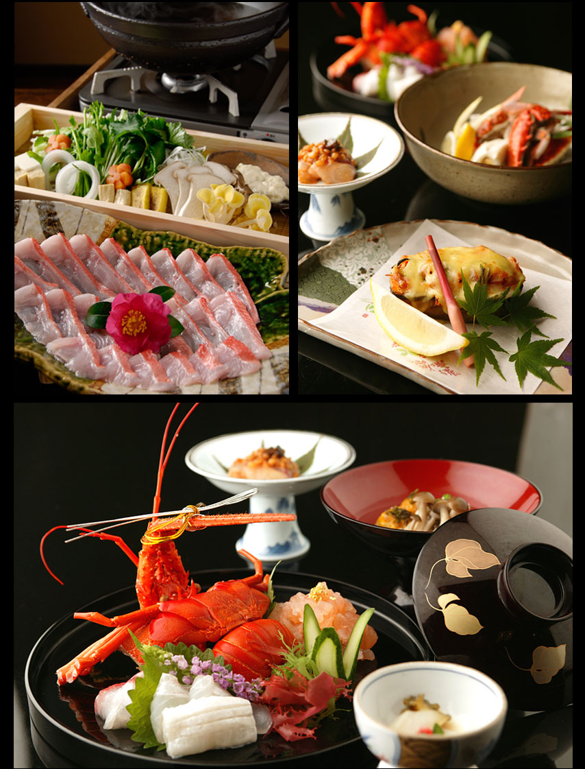 만남, 모모야 전용 공간입니다. 각 고객의 전용 공간이 마련되어 있는 이 곳에서의 카이세키 석식은 이즈 바다의 신선함을 주제로, 프랑스식의 요리를 더해 만든