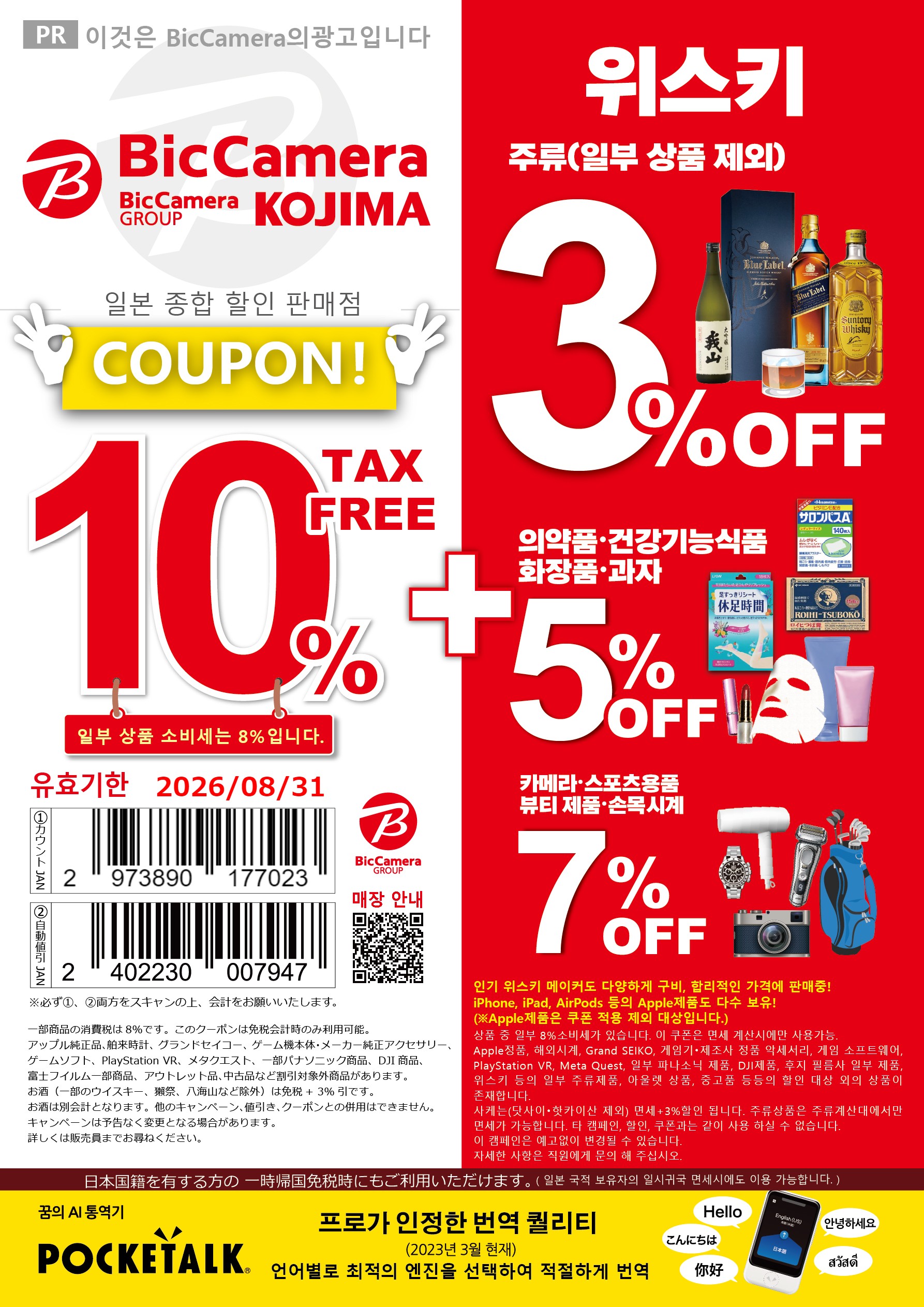 → 바우처 뒷부분에 출력된 빅카메라 할인 쿠폰을 현장에서 제시해주시면 할인 적용이 가능합니다.